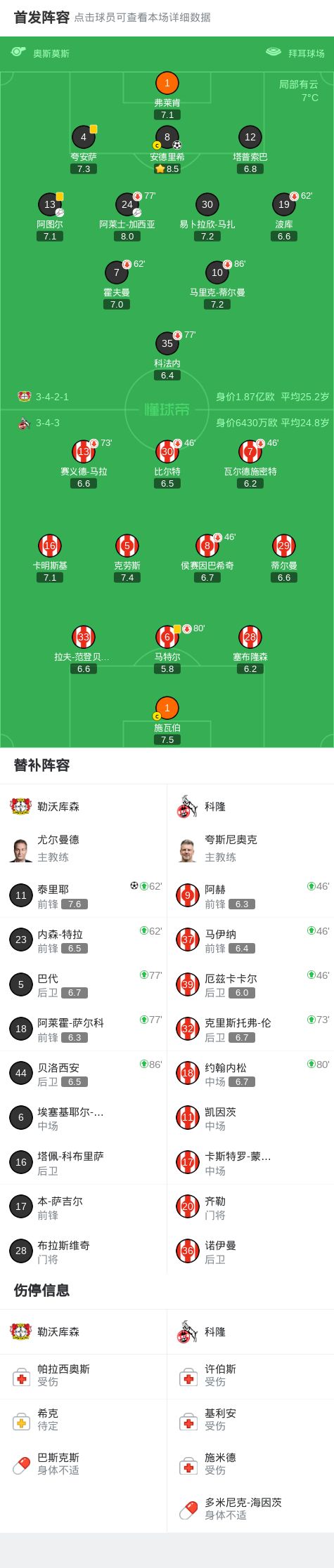 第71分鐘,加西亞角球開出,安德里希頭球破門,勒沃庫森2-0領先