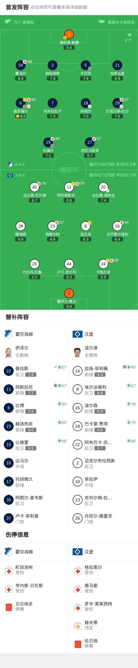 第65分鐘,霍芬海姆球員巴祖馬納-杜爾助攻倫佩爾打入一球。